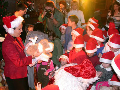To właśnie na jej zaproszenie dzieci tuż przed jedenastą licznie zgromadziły się w Wojewódzkim Domu Kultury w Kielcach. Były tańce, konkursy, poczęstunek i dobra zabawa. Największą radość dzieciom sprawiła obecność świętego Mikołaja, który wraz z wicewojewodą wręczał upominki. - Ja dostałam owoce i słodycze, ale najbardziej cieszę się z maskotki - mówiła mała Edytka z domu dziecka w Kielcach. -Bardzo fajnie się bawię. Jeszcze nie byłam na takiej choince.- Ogromnie się cieszę, że odpowiedziałyście na moje zaproszenie - mówiła Joanna Grzela, główny inicjator przedsięwzięcia. - Mam nadzieję, że prezenty sprawią wam wiele radości. Życzę wszystkim udanej zabawy.