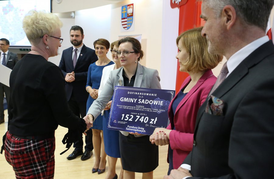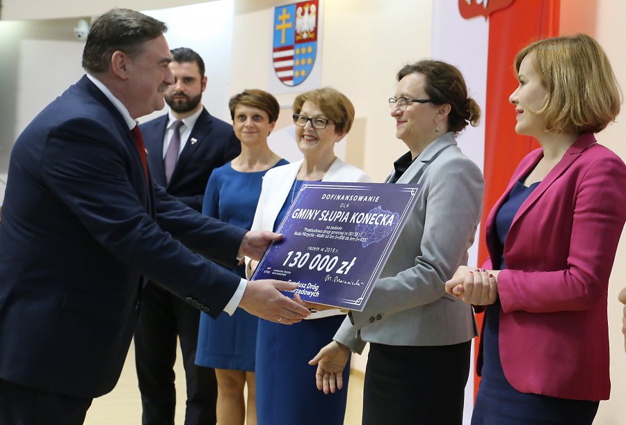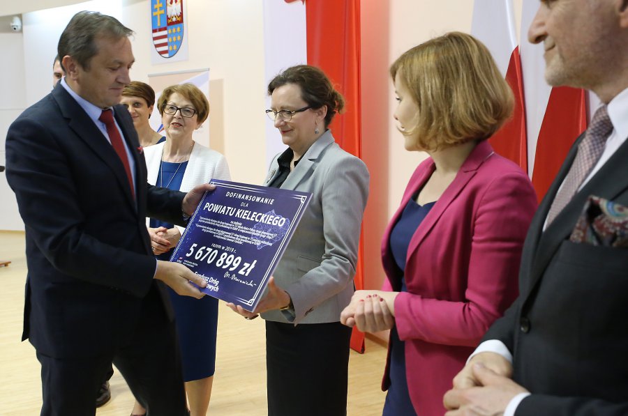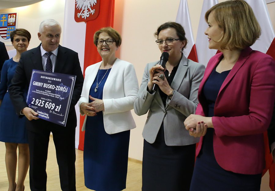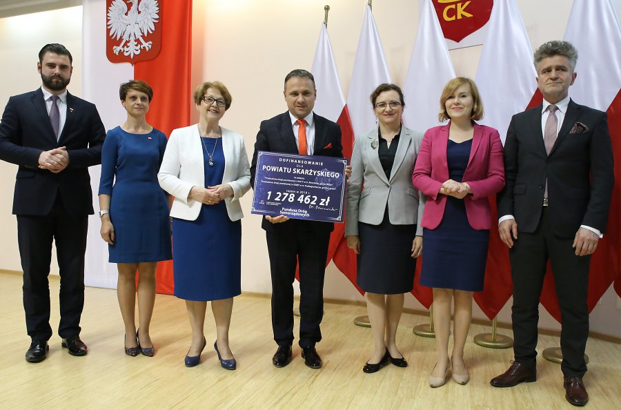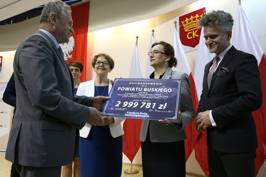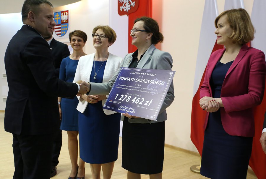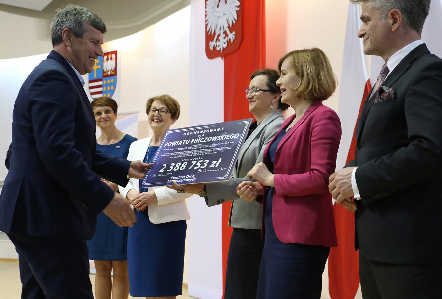 Prawie 46 milionów złotych trafi do świętokrzyskich powiatów i gmin w ramach I etapu Funduszu Dróg Samorządowych. Symboliczne promesy wręczyła samorządowcom wojewoda Agata Wojtyszek. Gośćmi spotkania w urzędzie wojewódzkim byli wiceminister sportu i turystyki Anna Krupka, poseł Maria Zuba i senator Krzysztof Słoń.