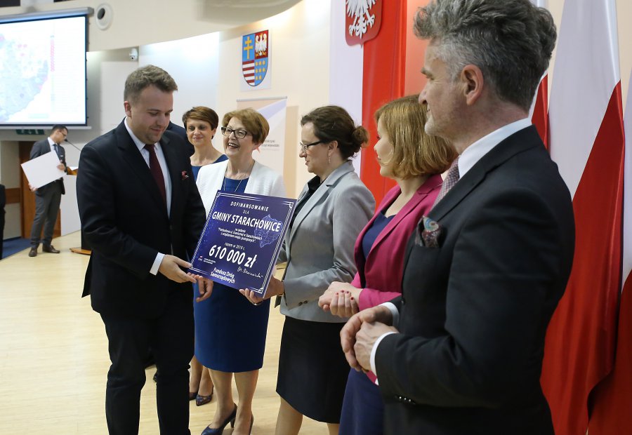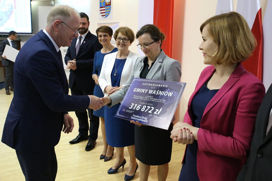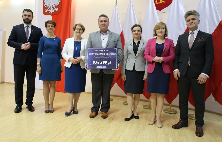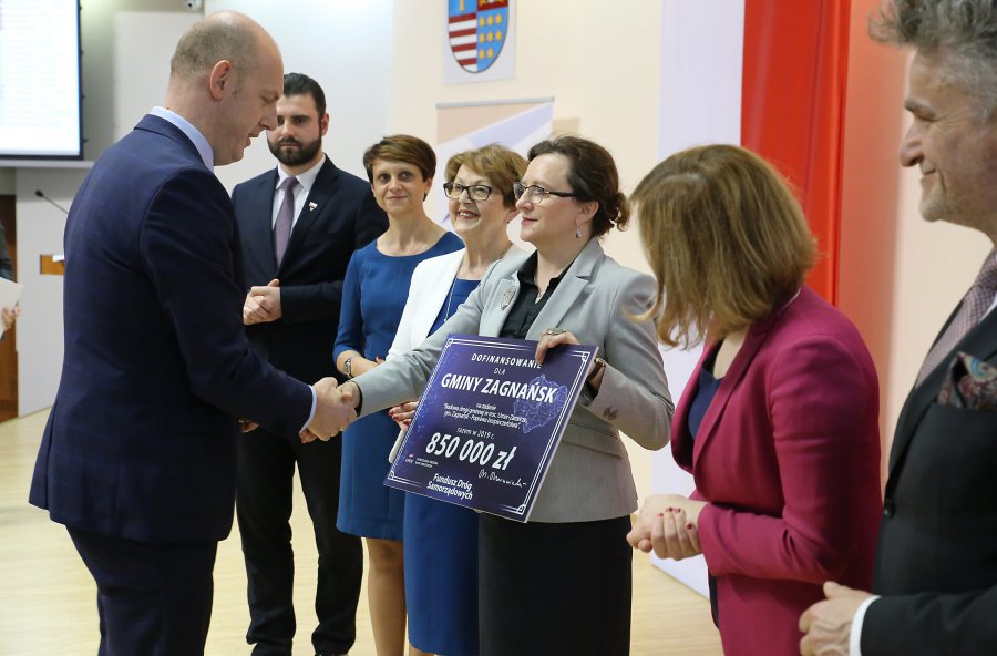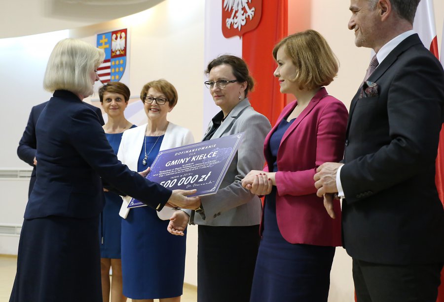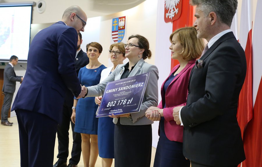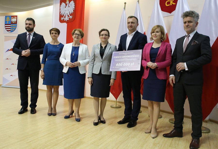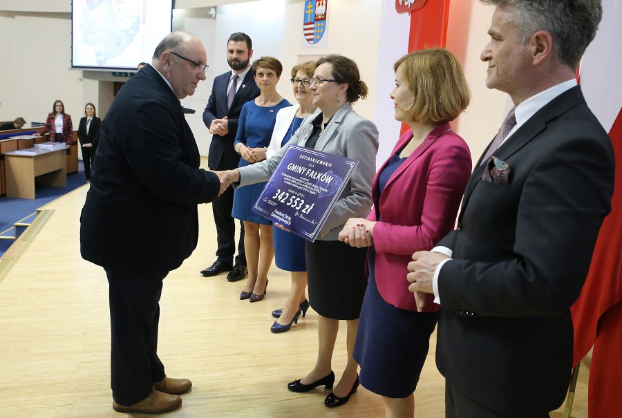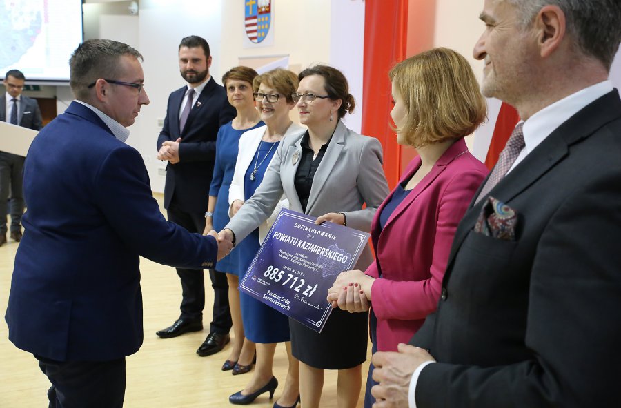 Prawie 46 milionów złotych trafi do świętokrzyskich powiatów i gmin w ramach I etapu Funduszu Dróg Samorządowych. Symboliczne promesy wręczyła samorządowcom wojewoda Agata Wojtyszek. Gośćmi spotkania w urzędzie wojewódzkim byli wiceminister sportu i turystyki Anna Krupka, poseł Maria Zuba i senator Krzysztof Słoń.