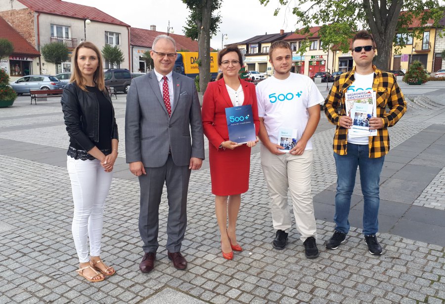Zorganizowano kolejne spotkania informacyjne dotyczące programu „Rodzina 500+”. Wojewoda Agata Wojtyszek zachęcała do korzystania z rządowej inicjatywy mieszkańców Małogoszcza. Wicewojewoda Bartłomiej Dorywalski odwiedził Bieliny.