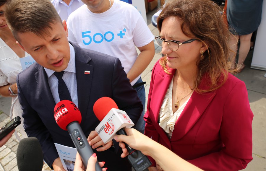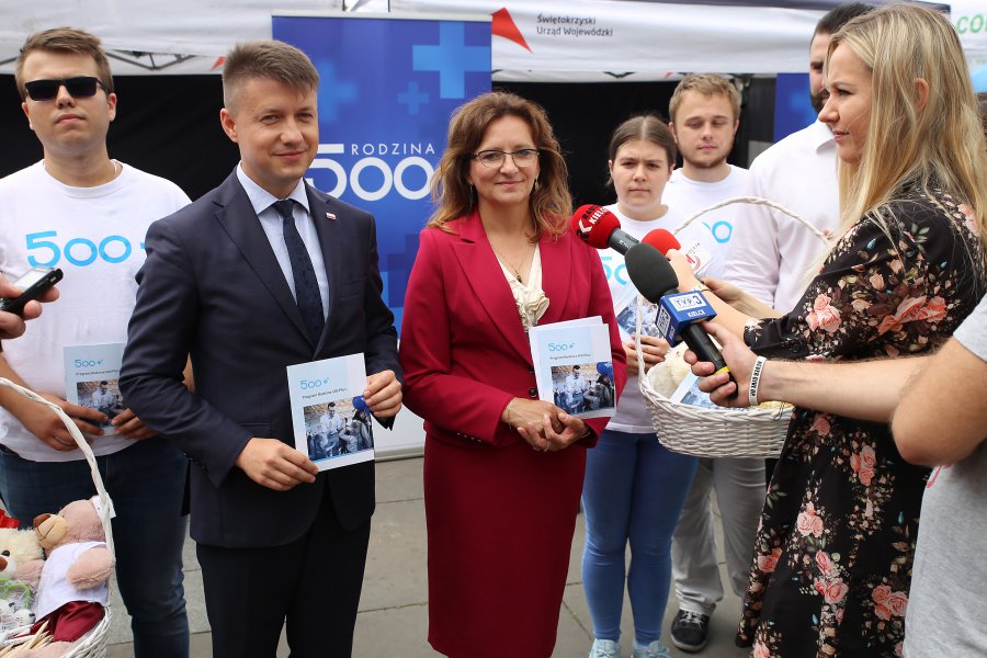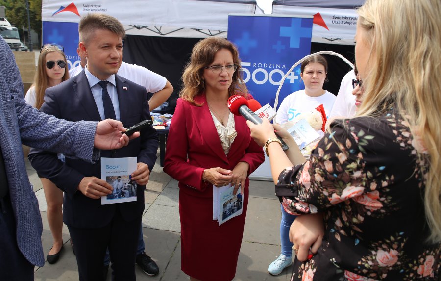 O akcji informacyjnej dotyczącej rządowego programu „Rodzina 500+” mówili podczas konferencji prasowej w Kielcach wojewoda Agata Wojtyszek i wicewojewoda Bartłomiej Dorywalski.