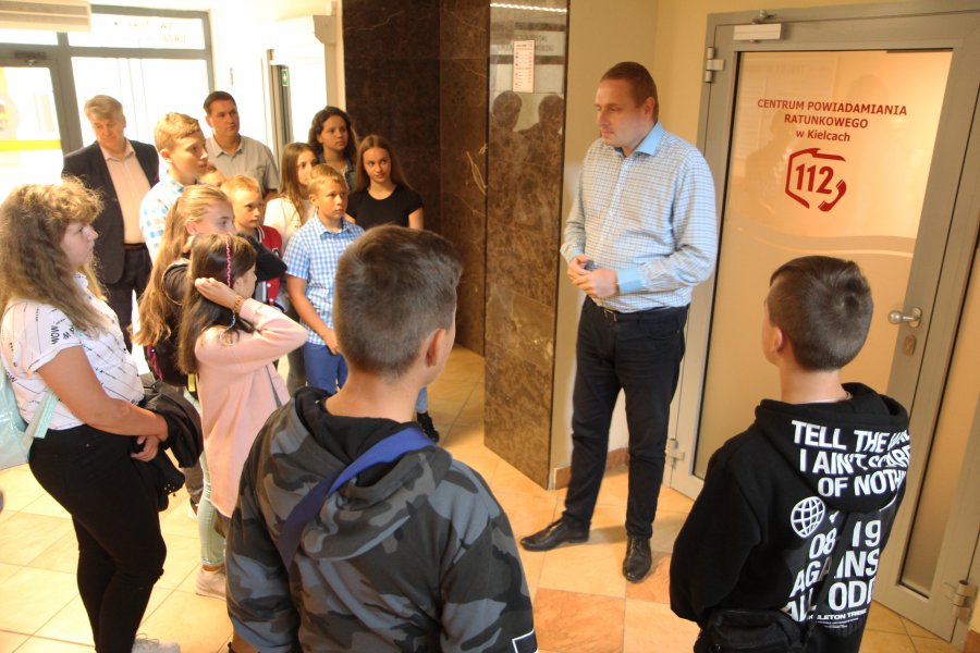 Uczniowie wizytę rozpoczęli od poznawania specyfiki pracy w Wydziale Bezpieczeństwa i Zarządzania Kryzysowego, gdzie w Wojewódzkim Centrum Zarządzania Kryzysowego mogli zobaczyć, w jaki sposób pracownicy urzędu czuwają nad bezpieczeństwem wszystkich mieszkańców województwa świętokrzyskiego. Poznali również pracę operatora numeru 112, a następnie zwiedzili Wydział Spraw Obywatelskich i Cudzoziemców, gdzie dowiedzieli się wielu ważnych informacji dotyczących wyrobienia paszportu.