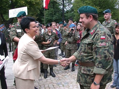 Joanna Grzela, wicewojewoda świętokrzyski powitała uczestników XL Marszu Szlakiem Pierwszej Kompanii Kadrowej
