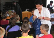 Wicewojewoda Joanna Grzela spotkała się z dziećmi w Domu Kultury w Opatowie i Ośrodku Kolonijnym Golejów, w ramach akcji "Pomóżmy dzieciom spędzić szczęśliwie wakacje".