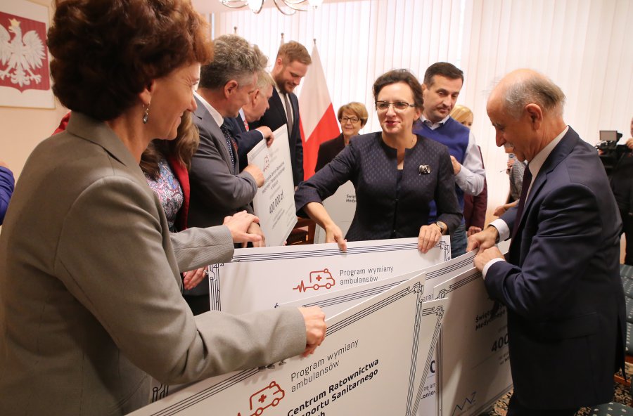 Umowy w ramach rządowego „Programu wymiany ambulansów” podpisał ze Świętokrzyskim Centrum Ratownictwa Medycznego i Transportu Sanitarnego wiceminister zdrowia Janusz Cieszyński. Gospodarzem spotkania w urzędzie wojewódzkim była wojewoda Agata Wojtyszek.