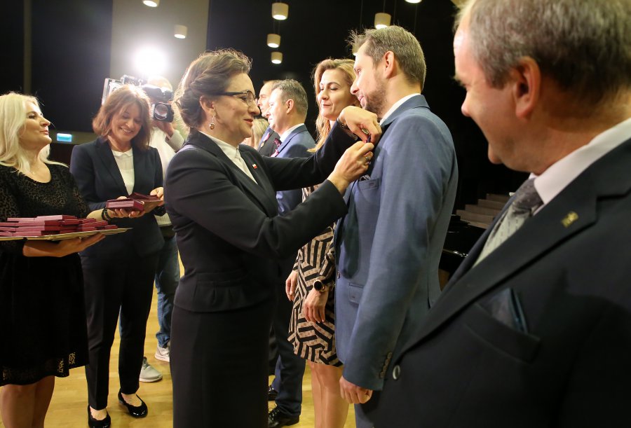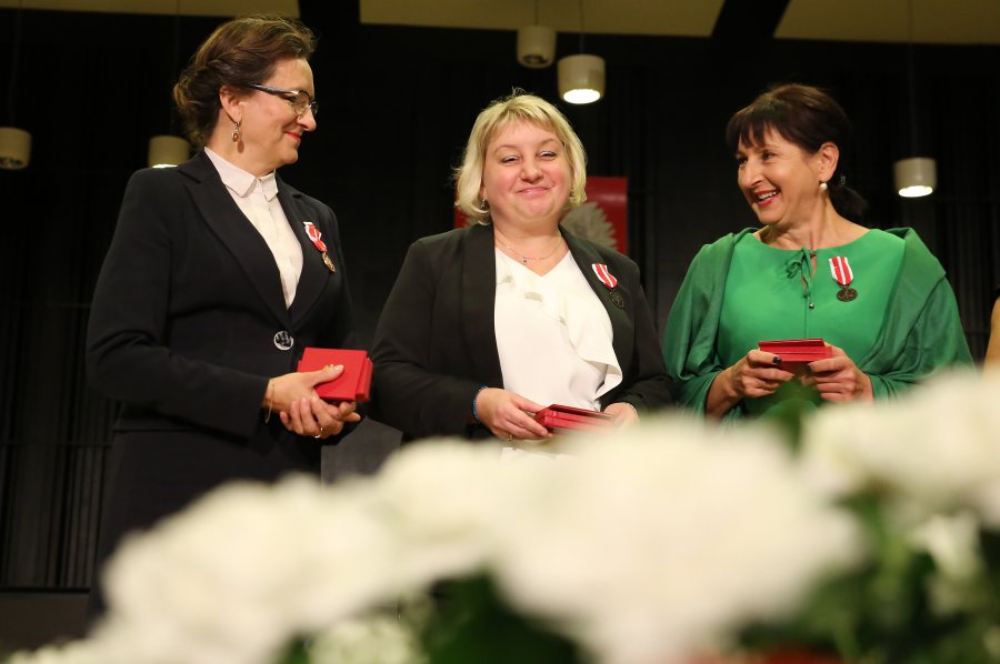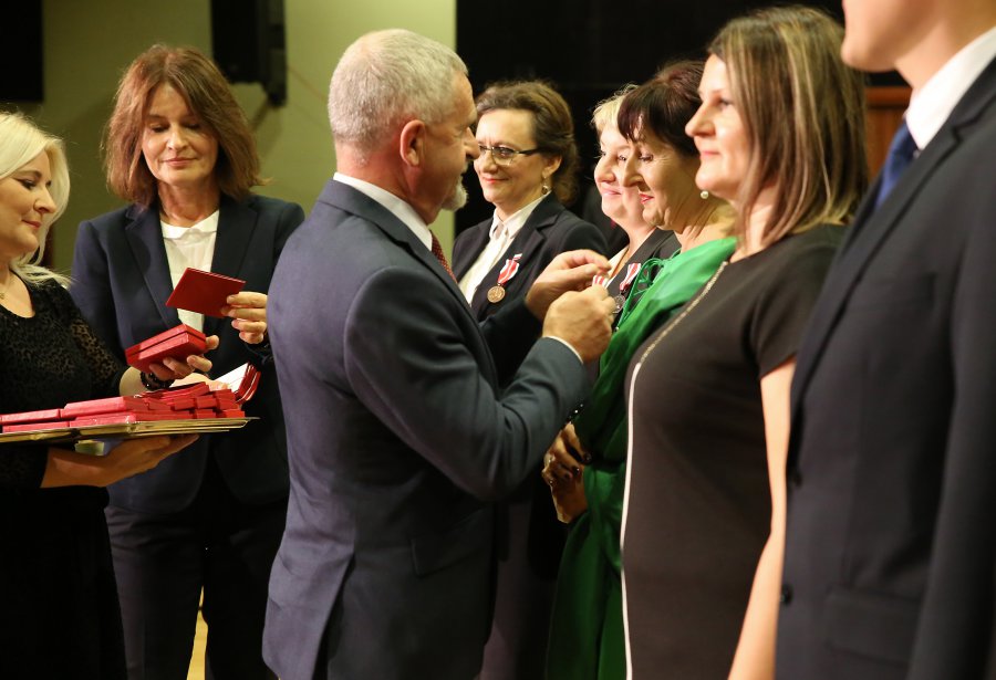 Świętokrzyscy pedagodzy otrzymali złote, srebrne i brązowe Medale za Długoletnią Służbę, przyznane przez Prezydenta RP. – To nauczyciel swoją pracą zasługuje na szacunek uczniów i ich rodziców. Tego szacunku nie da się narzucić z góry, ten szacunek wypracowują Państwo w codziennej trosce o wymiar edukacyjny i wychowawczy uczniów. To Państwo kreują postawy naszych młodych obywateli. Razem z rodzicami tworzycie to, co najważniejsze: przyszłość naszego narodu – mówiła Agata Wojtyszek dziękując nauczycielom za ich codzienną pracę.