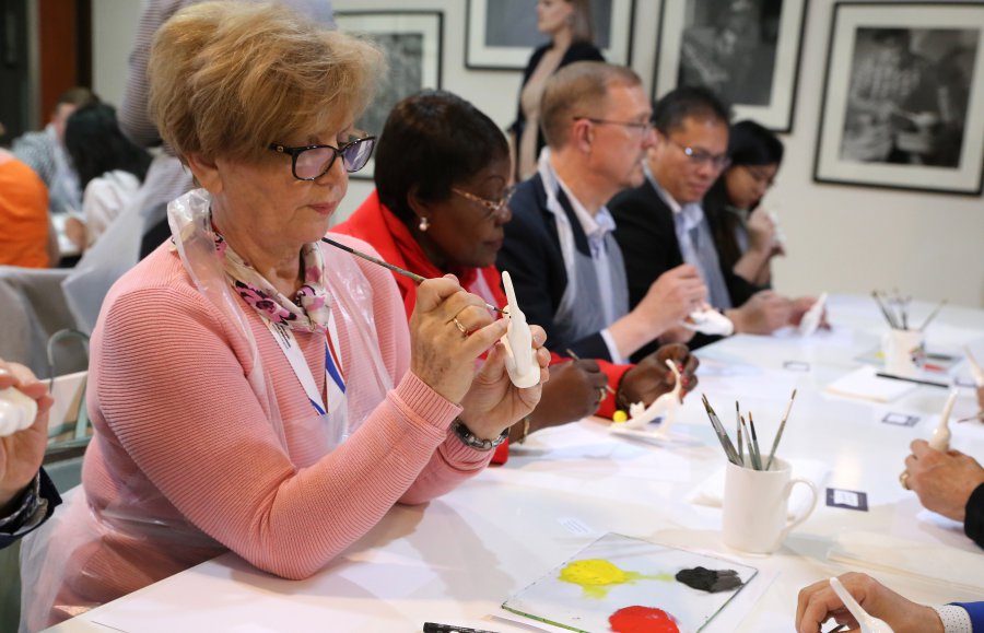 Ostatni dzień pobytu - niedziela – to wizyta w Żywym Muzeum Porcelany w Ćmielowie, gdzie dyplomaci poznali technikę wytwarzania słynnej w świecie ćmielowskiej porcelany, mieli okazję wziąć udział w warsztatach ręcznego malowania wyrobów oraz zwiedzić ciekawe wystawy. Wizytę zakończyła podróż do opactwa oo. oblatów na Świętym Krzyżu. W Sanktuarium Relikwii Drzewa Krzyża Świętego ambasadorzy, poza zwiedzeniem zabytkowego klasztoru, poznali dzieje dawnego benedyktyńskiego opactwa, symbolu Ziemi Świętokrzyskiej.