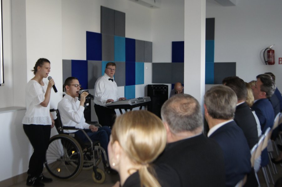 Zaproszeni goście podczas części oficjalnej uroczystości, obejrzeli występ artystyczny, który zaprezentowali podopieczni domu. Wszyscy zebrani mieli także okazję zwiedzić placówkę oraz poznać pracownie, w których czas spędzają uczestnicy zajęć. Jest tu miedzy innymi pracownia muzyczna, komputerowa, krawiecka, higieniczno-kosmetyczna, plastyczna, stolarska.