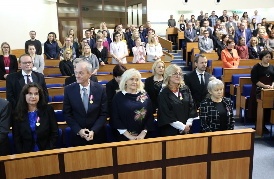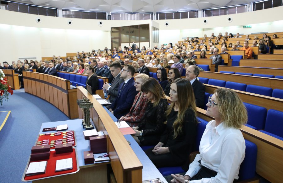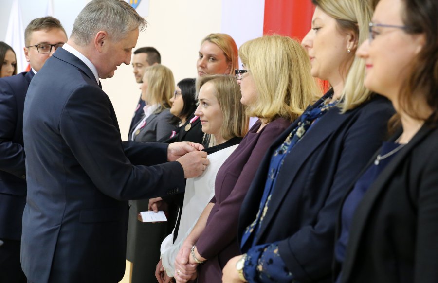Wojewoda wręczył odznaczenia państwowe, a wyróżniający się pracownicy otrzymali z rąk dyrektora generalnego statuetki Świętokrzyskiego Urzędu Wojewódzkiego. Uroczystość była także doskonałym momentem na przypomnienie o przypadającej w tym roku rocznicy 100-lecia powstania naszego województwa. W przygotowanej prezentacji obecni na sali mieli okazję przypomnieć sobie zarys dziejowy wydarzeń sprzed stu lat.