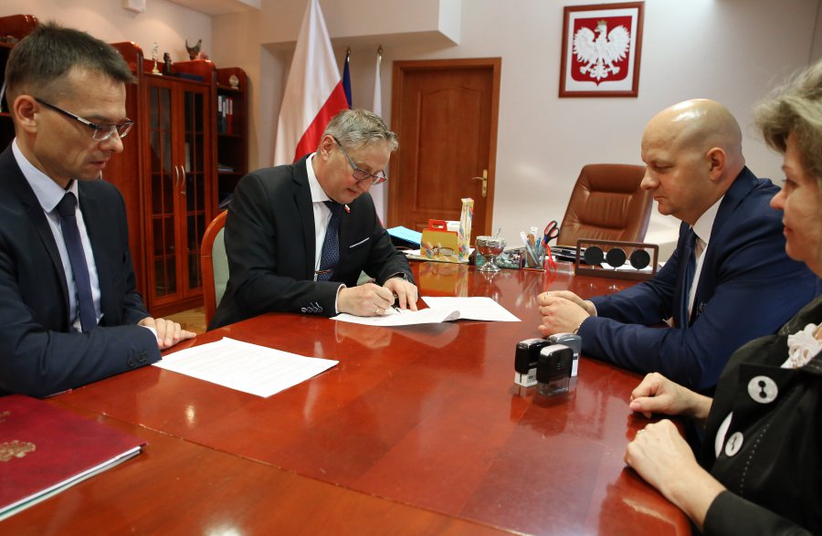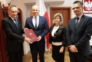 Wojewoda Zbigniew Koniusz podpisał z burmistrzem Miasta i Gminy Szydłów umowę w sprawie rządowego dofinansowania zakupu autobusu szkolnego.