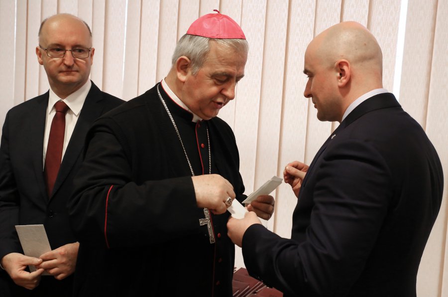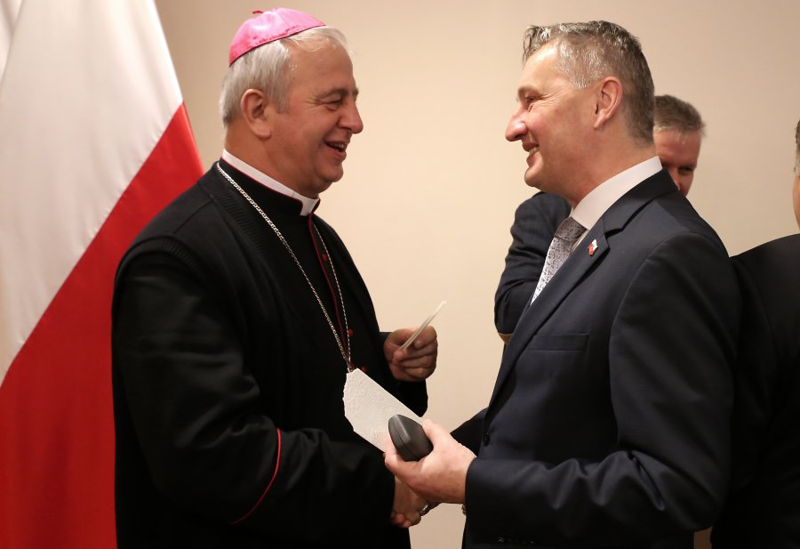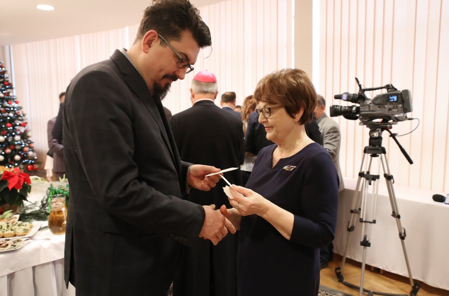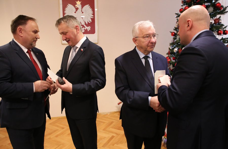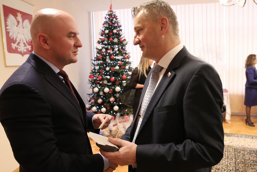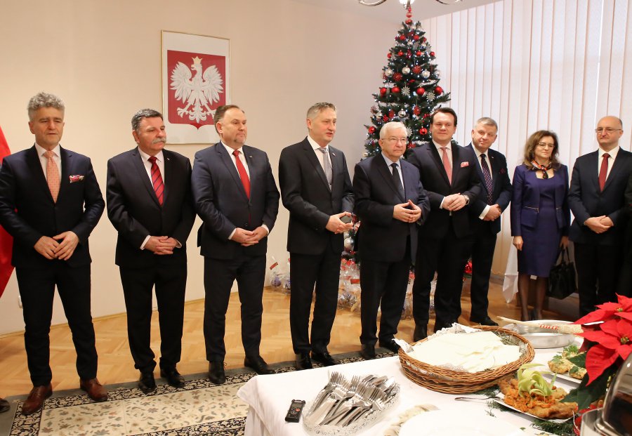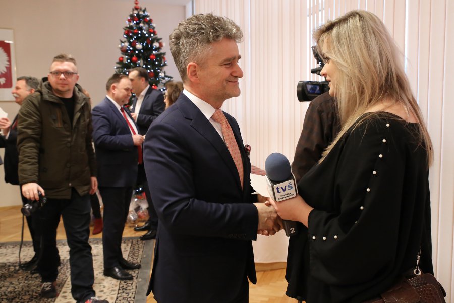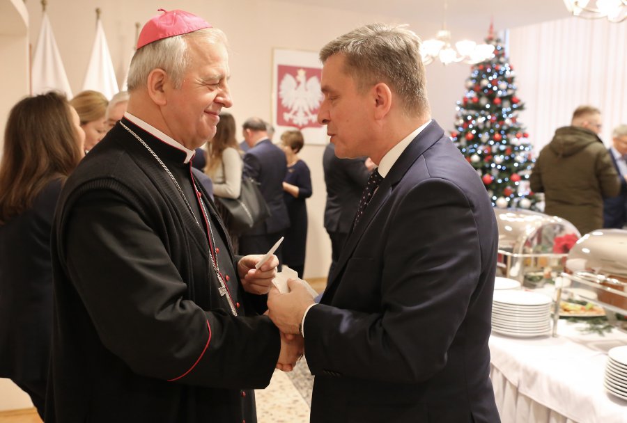 Błogosławieństwa udzielił ks. biskup Jan Piotrowski, składając – wraz z wojewodą i wicewojewodą – życzenia zdrowych i radosnych Świąt Bożego Narodzenia. – Święta to radosne oczekiwanie na przyjście Chrystusa, ale także oczekiwanie na to, że dokona się w nas wielka zmiana. Zatrzemy istniejące podziały, zasypiemy niepotrzebnie rodzące się konflikty i będziemy jedną wielką wspólnotą. I taki jest sens naszych spotkań wigilijnych, także tego dzisiejszego spotkania. Mam nadzieję, że ten opłatek, którym się podzielimy zjednoczy nas wszystkich w tym, co jest najważniejsze – a najważniejsza dla nas jest Polska – mówił Zbigniew Koniusz.