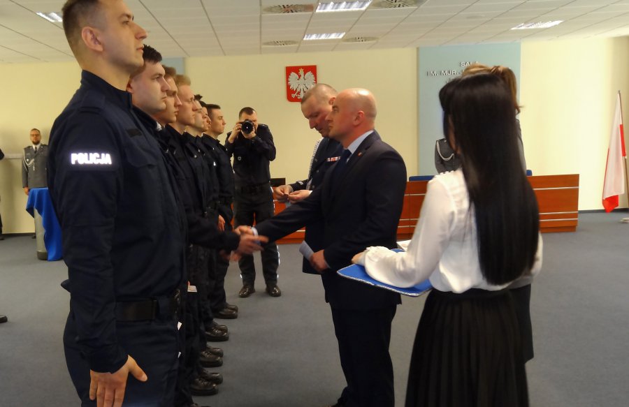 Legitymacje służbowe odebrało z rąk swego szefa 26 policjantów. Najbliższe 6 miesięcy spędzą oni w Centrum Szkolenia Policji w Legionowie. Tam będą zdobywać wiedzę teoretyczną i praktyczną m.in. z zakresu przepisów prawa, taktyki i technik interwencji. Będą także doskonalić swoje umiejętności strzeleckie. W ubiegłym roku służbę w garnizonie świętokrzyskim rozpoczęło ponad 70 nowych policjantów. (Źródło informacji: Komenda Wojewódzka Policji w Kielcach).