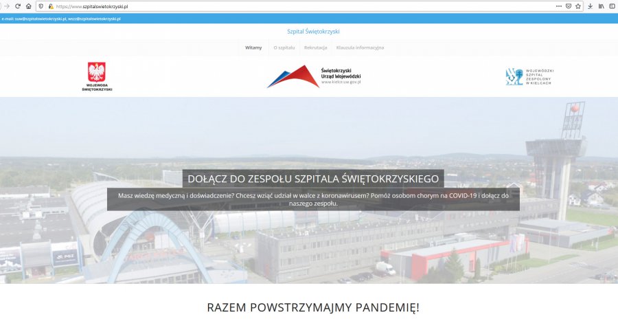 Strona Szpitala Świętokrzyskiego znajduje się pod adresem https://www.szpitalswietokrzyski.pl. Ofertę pracy można zgłosić za pomocą dostępnego formularza rekrutacyjnego. - Zachęcam do zgłoszenia się do zespołu szpitala wszystkich, którzy czują potrzebę niesienia pomocy drugiemu człowiekowi i mają taką możliwość. Zapraszam wszystkich, którzy chcą się zaangażować w działania na rzecz naszej społeczności. Połączmy siły i razem czyńmy dobro, bo przecież „Twoje zdrowie to moja sprawa” – mówi Zbigniew Koniusz.