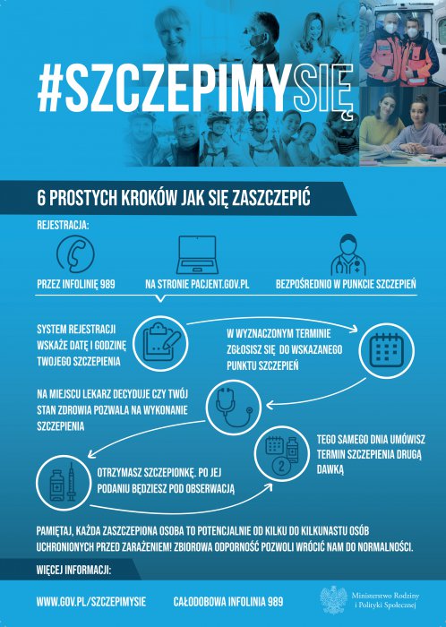 • 22 stycznia uruchomimy możliwość umawiania terminów i zapisów na szczepienia dla seniorów pow. 70 r.ż. 25 stycznia rozpoczną się szczepienia zarejestrowanych seniorów.