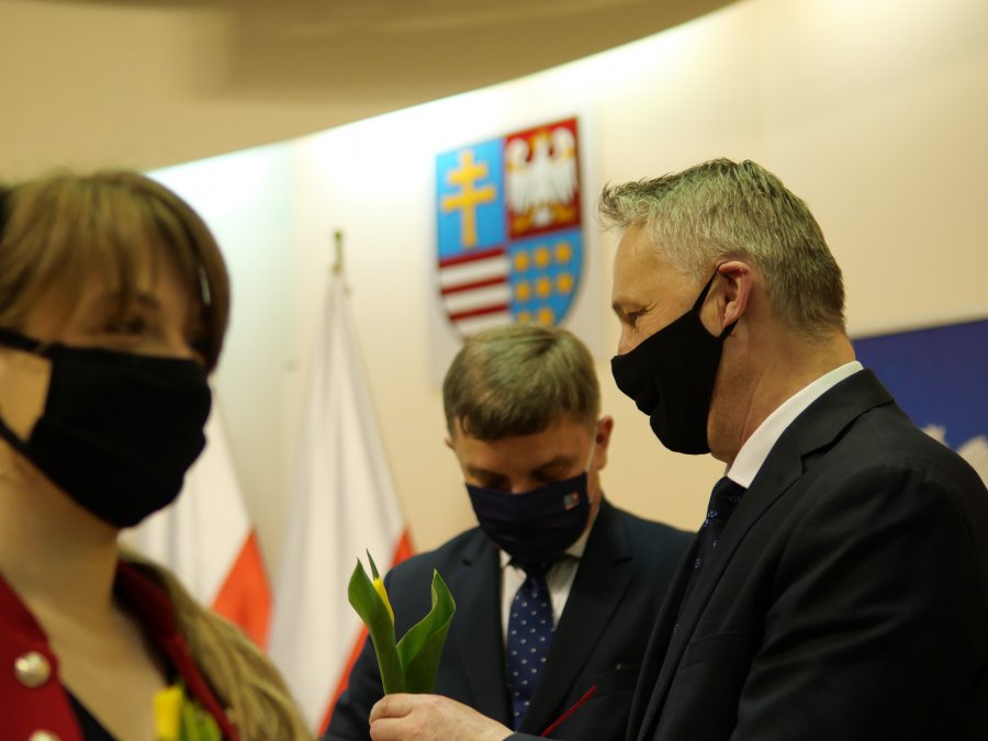 W symbolicznym geście wręczenia kwiatów każdej z pań, pracujących w podległych wojewodzie jednostkach Zbigniew Koniusz przekazał najgorętsze życzenia wszystkim mieszkankom województwa.