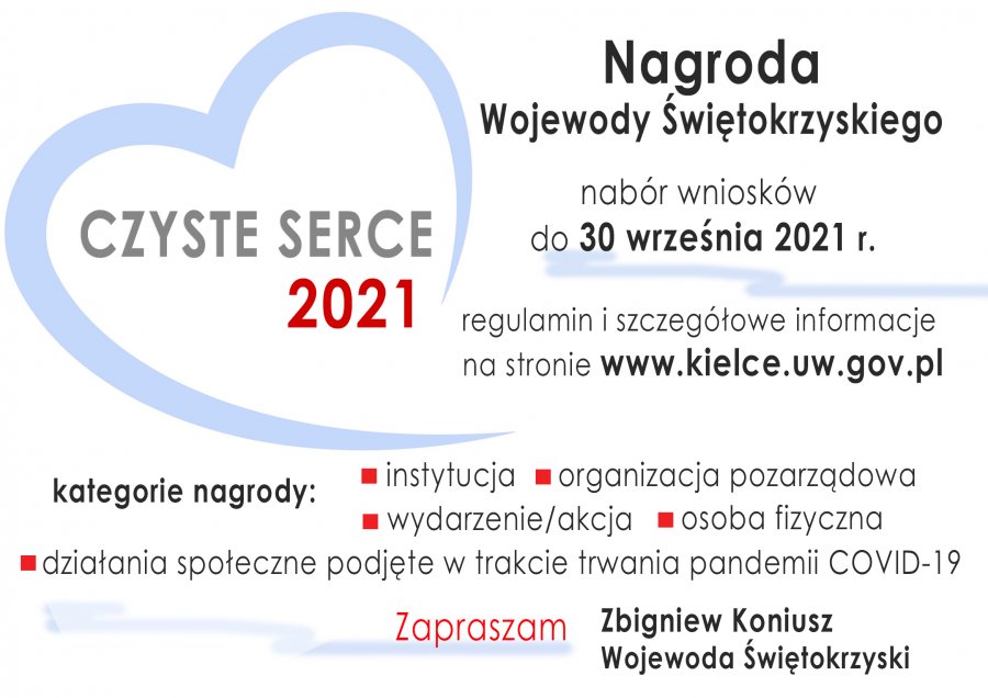Do końca września można składać wnioski o przyznanie tegorocznej nagrody Wojewody Świętokrzyskiego „Czyste Serce”.