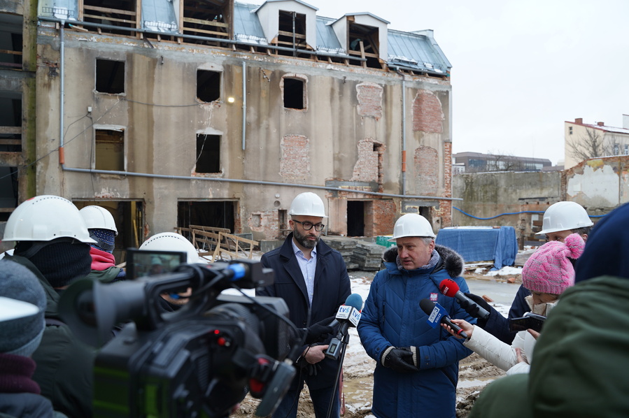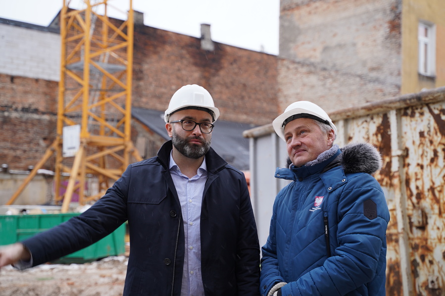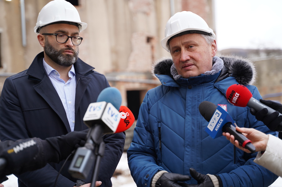 Wojewoda świętokrzyski Zbigniew Koniusz odwiedził plac budowy nowej siedziby Teatru im. Stefana Żeromskiego w Kielcach.