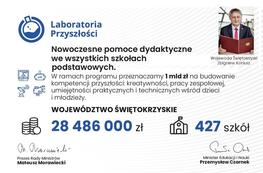 Ponad 80 tysięcy uczniów z województwa świętokrzyskiego skorzysta z nowych pomocy dzięki rządowemu programowi "Laboratoria Przyszłości".