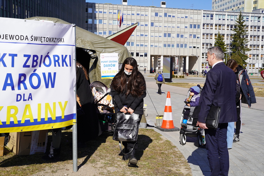Wszystkie osoby, które chciałyby wesprzeć obywateli Ukrainy poprzez przekazanie pomocy rzeczowej zapraszamy do punktu przy al. IX Wieków Kielc 3 przed budynkiem Świętokrzyskiego Urzędu Wojewódzkiego.