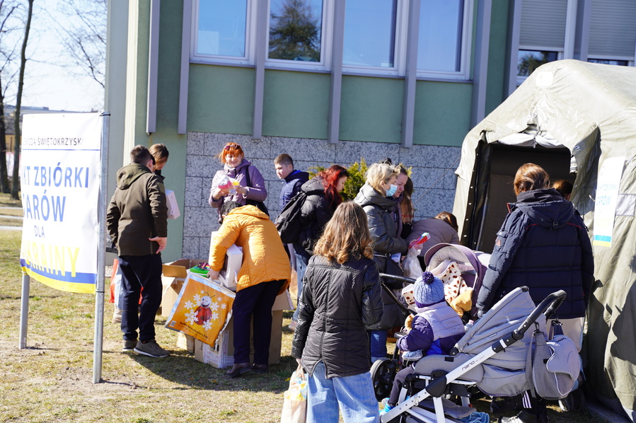 Wielu mieszkańców województwa świętokrzyskiego nadal aktywnie pomaga obywatelom Ukrainy, którzy uciekli przed konfliktem zbrojnym. Cześć z nich znalazła schronienie w naszym regionie i z myślą o nich powstał kolejny punkt zbiórki darów. Przed ŚUW w Kielcach w zorganizowanym namiocie można przynosić rzeczy, które trafią do najbardziej potrzebujących osób z Ukrainy.