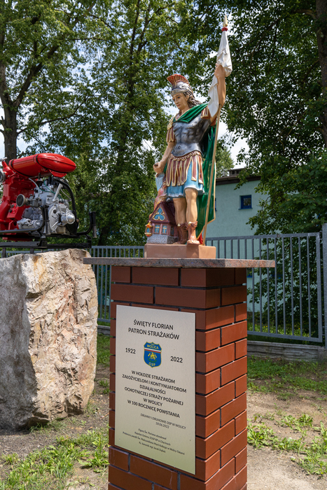 Na placu przed remizą strażacką poświęcono figurę świętego Floriana.