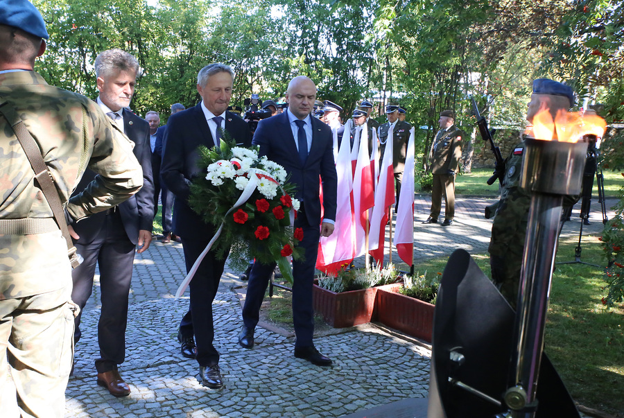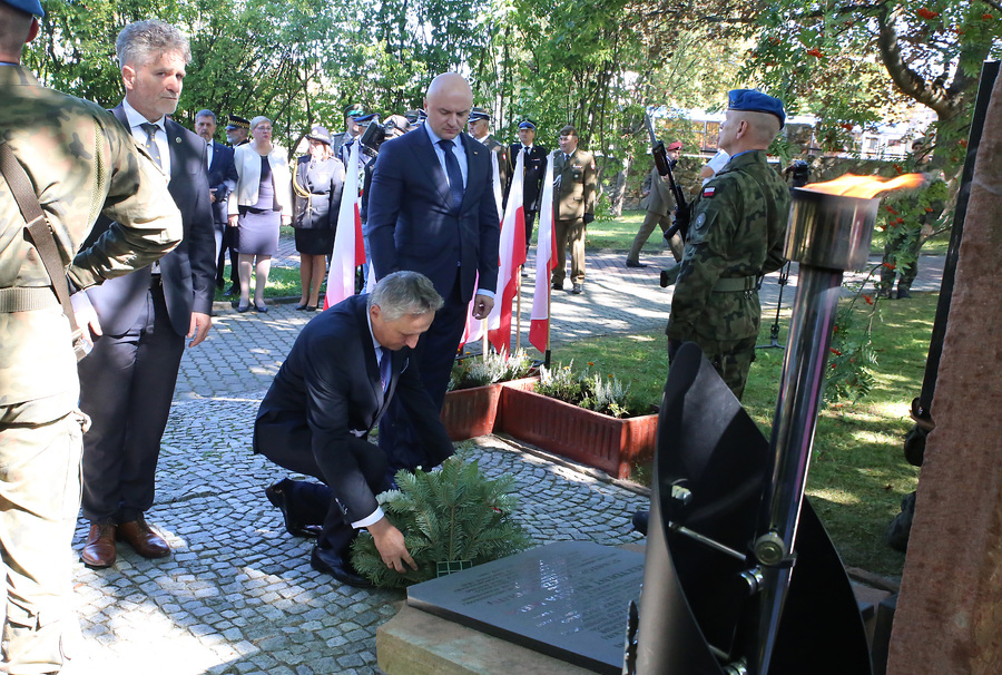 Podczas uroczystości, przeprowadzonych zgodnie z wojskowym ceremoniałem, przed Pomnikiem Żołnierzy Września 1939 r. złożono kwiaty i zapalono znicze oddając hołd ofiarom wojny.