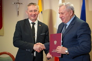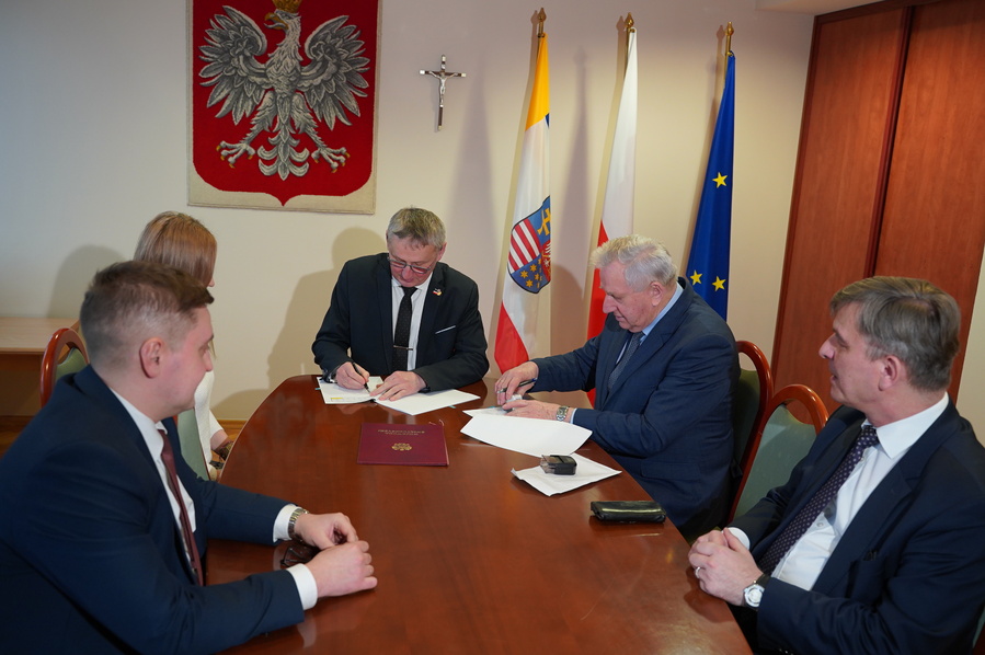 Wojewoda świętokrzyski Zbigniew Koniusz podpisał z wójtem gminy Strawczyn Tadeuszem Tkaczykiem umowę dotyczącą przekazania środków na Centrum Opiekuńczo-Mieszkalne w Oblęgorku.