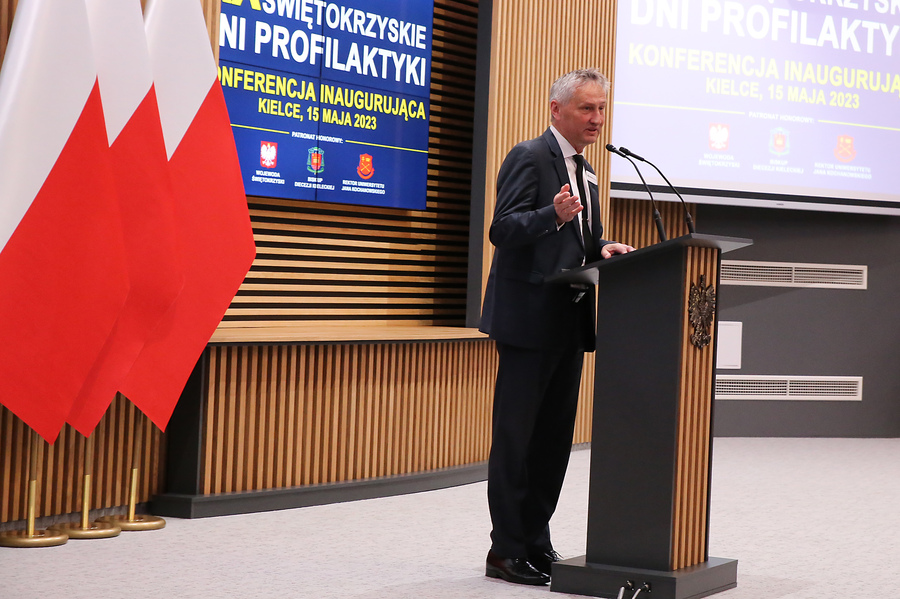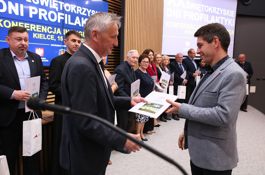 Podczas konferencji w urzędzie wojewódzkim, z okazji jubileuszu Świętokrzyskich Dni Profilaktyki, wojewoda podziękował tym, którzy przyczyniają się do organizacji tego wydarzenia oraz wspierają je swoją wiedzą i autorytetem.