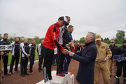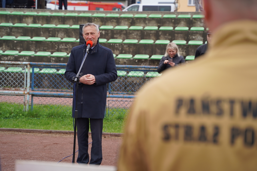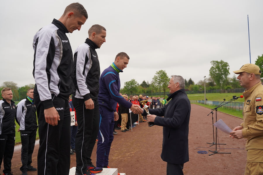 Wojewoda Zbigniew Koniusz wręczył puchary i nagrody dla najlepszych strażaków biorących udział w mistrzostwach.