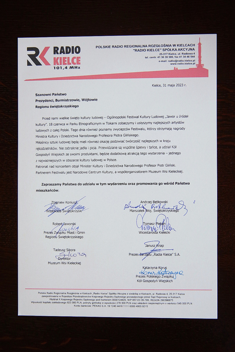 Goście biorący udział w spotkaniu skierowali list do wójtów, burmistrzów i prezydentów z województwa świętokrzyskiego z prośbą o promowanie festiwalu i zapraszanie mieszkańców swoich miast i gmin do udziału w wydarzeniu. List podpisali: Zbigniew Koniusz – wojewoda świętokrzyski, Andrzej Bętkowski – marszałek województwa świętokrzyskiego, wicestarosta kielecki Tomasz Pleban, Robert Jaworski – prezes Związku Miast i Gmin Regionu Świętokrzyskiego, Tadeusz Sikora – dyrektor Muzeum Wsi Kieleckiej oraz Katarzyna Korus -prezes Polskiego Związku Kół Gospodyń Wiejskich.