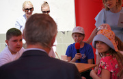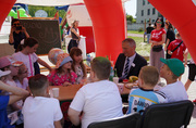 Wojewoda udzielił także wywiadu małym miłośnikom dziennikarstwa oraz wręczył uczniom z okazji Dnia Dziecka upominki.