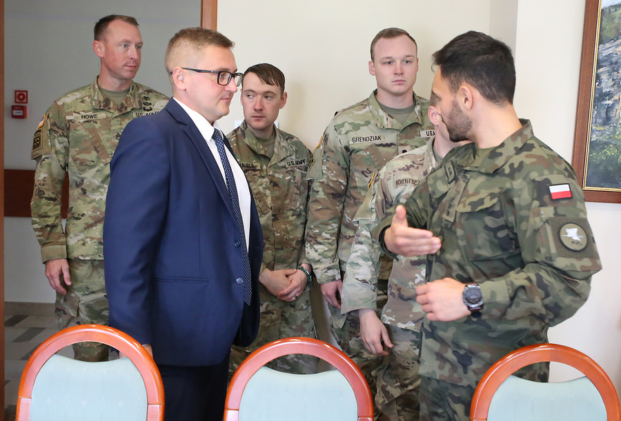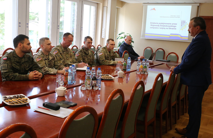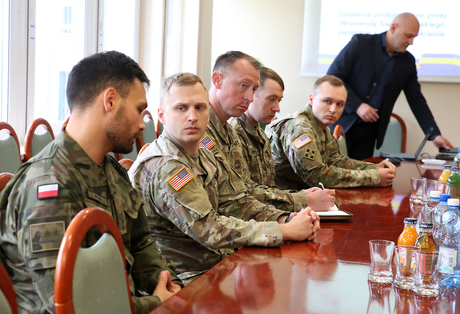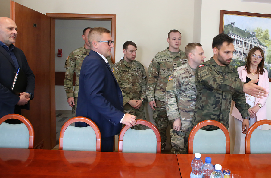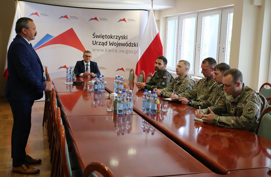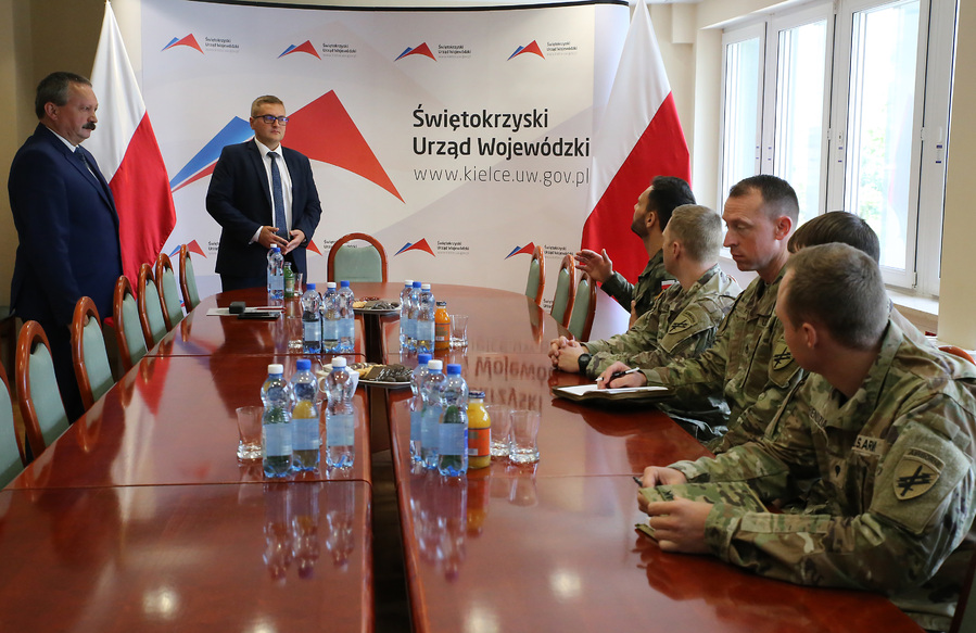 Żołnierze z Zespołu ds. Cywilnych Armii Stanów Zjednoczonych (CAT) złożyli wizytę w Świętokrzyskim Urzędzie Wojewódzkim. W imieniu wojewody gości przywitał dyrektor generalny ŚUW Marcin Bęben.