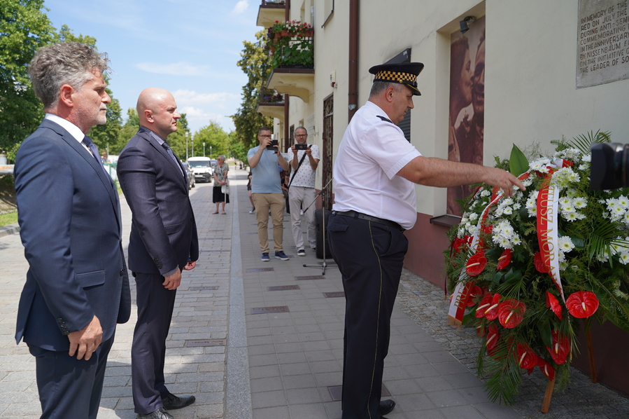 W obchodach 77. rocznicy pogromu kieleckiego uczestniczył wicewojewoda świętokrzyski Rafał Nowak. Uroczystości ku czci ofiar zbrodniczej prowokacji UB dokonanej w Kielcach odbyły się przy kamienicy znajdującej się przy ulicy Planty.