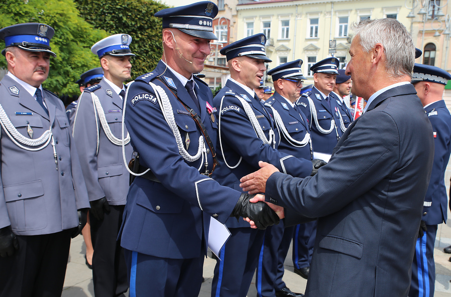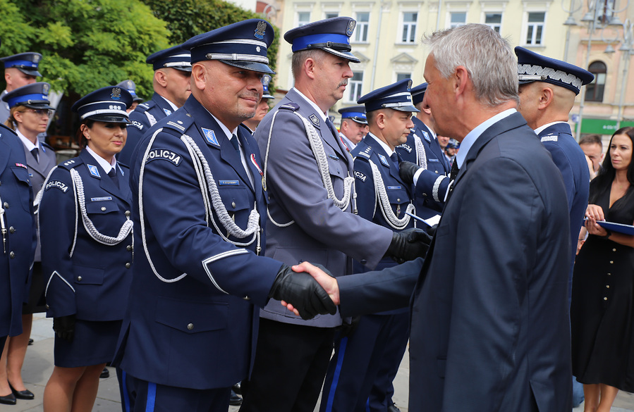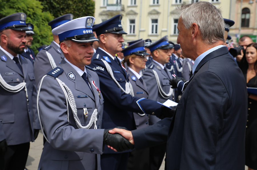 Podczas uroczystości na kieleckim Placu Artystów wręczono odznaczenia państwowe i resortowe oraz akty mianowania na wyższe stopnie policyjne. Medalem za Zasługi dla Policji została uhonorowana dyrektor Biura Wojewody Świętokrzyskiego Urzędu Wojewódzkiego Ewa Nowak.