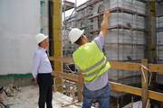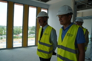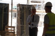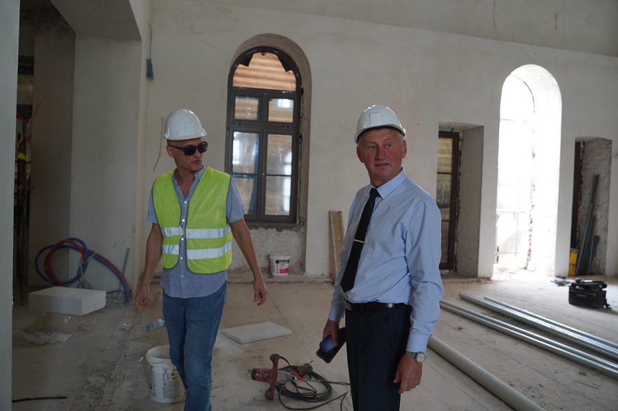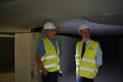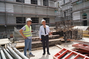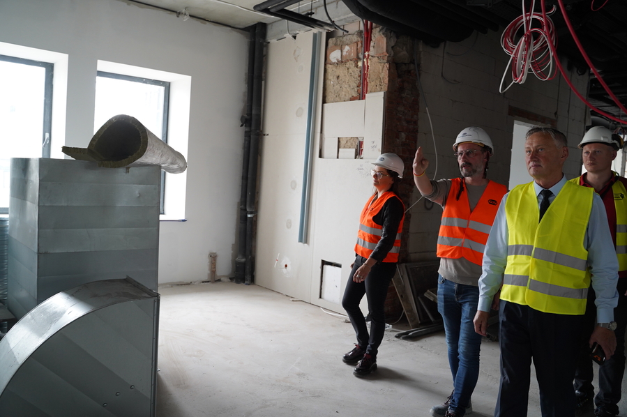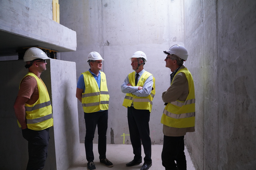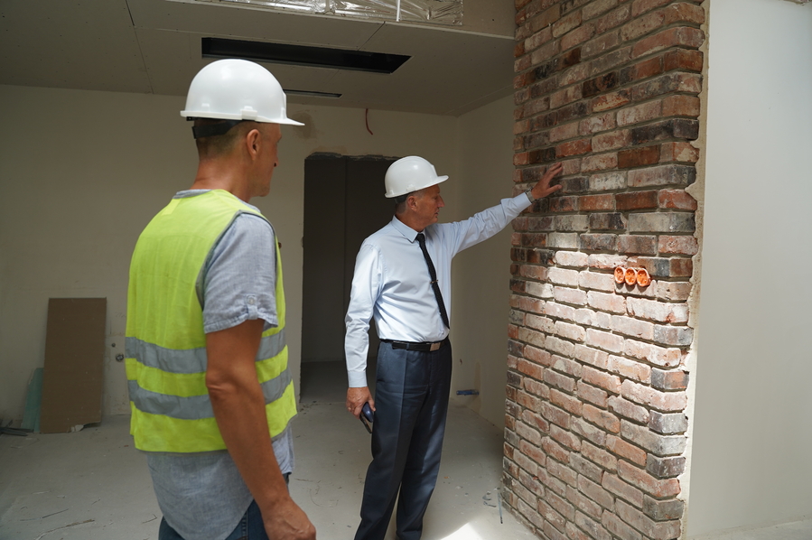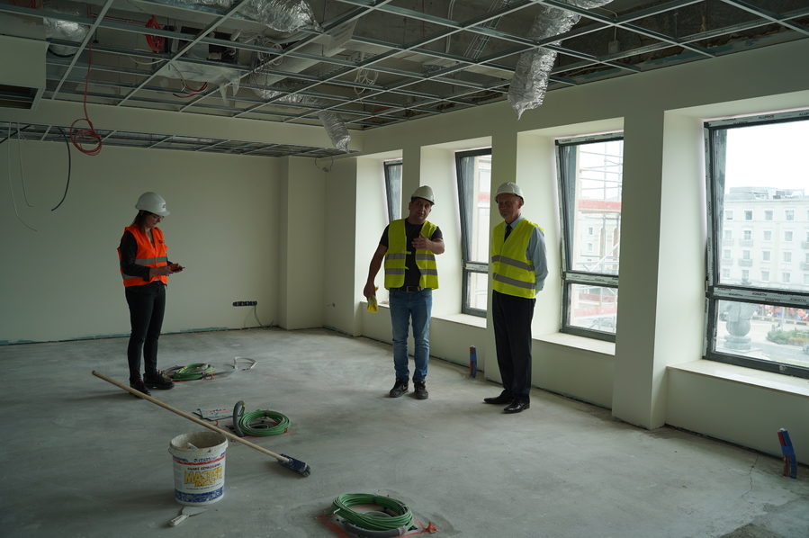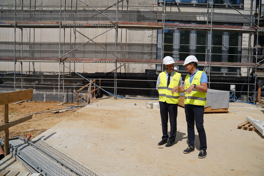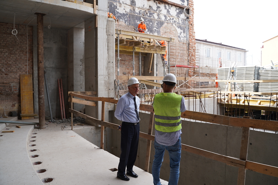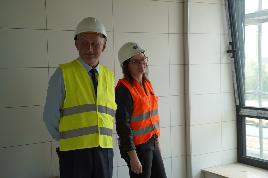 Podczas spotkania wojewoda rozmawiał z prezesem GUM prof. Jackiem Semaniakiem o postępach w pracach budowy.
