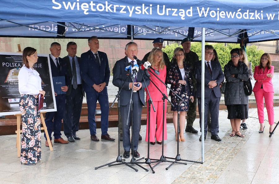 – Chcemy być razem. Aby ten wspólny czas tu spędzony był poświęcony poznaniu się nawzajem i powiedzeniu, za co dziękujemy. To raczej pytanie retoryczne, gdyż ostatni okres jest nasycony tak wieloma wydarzeniami związanymi nie tylko z życiem w naszych rodzinach, ale także z życiem państwa polskiego oraz całego świata, z tym co się dzieje i co się może wydarzyć. Jest za co dziękować – mówił wojewoda zapraszając na sierpniowy koncert. – Dziękując, czynimy to na wiele sposobów. Świętujemy ważne daty z historii, ale chcemy też tworzyć historię. Bo to daty związane także z tym, co się dzieje w naszych środowiskach. Bądźmy tu 13 sierpnia, by powiedzieć „dziękujemy sobie nawzajem” – podkreślił Zbigniew Koniusz.