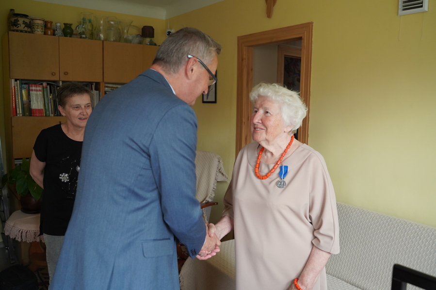 Wojewoda świętokrzyski Zbigniew Koniusz wręczył medal dla Pani Teresy w miejscu zamieszkania z powodu problemów zdrowotnych i braku możliwości wzięcia udziału w uroczystościach organizowanych w urzędzie wojewódzkim.
