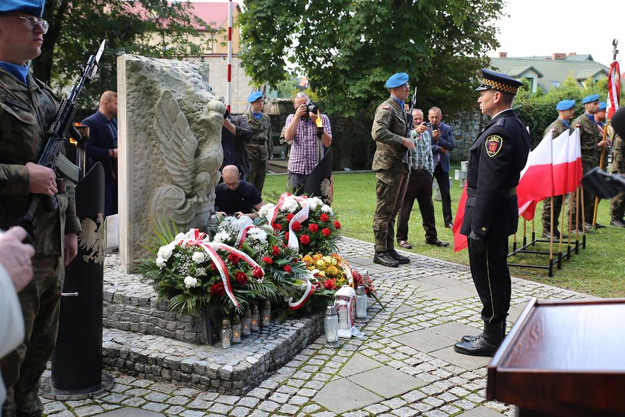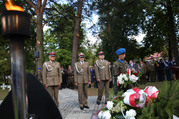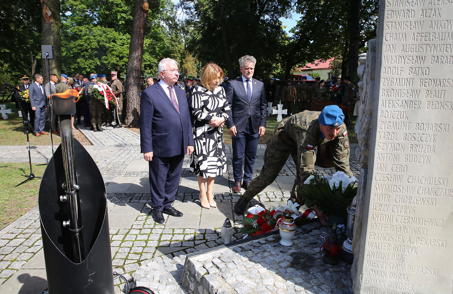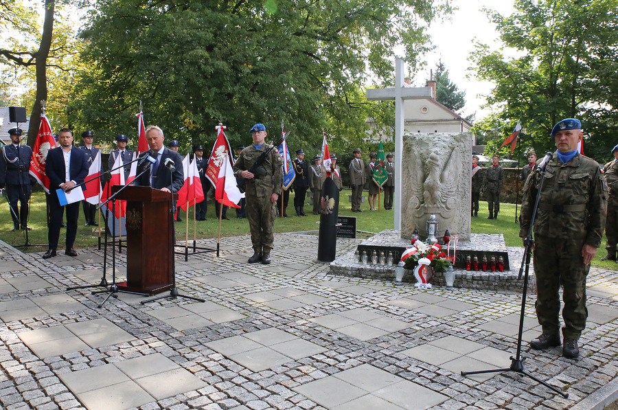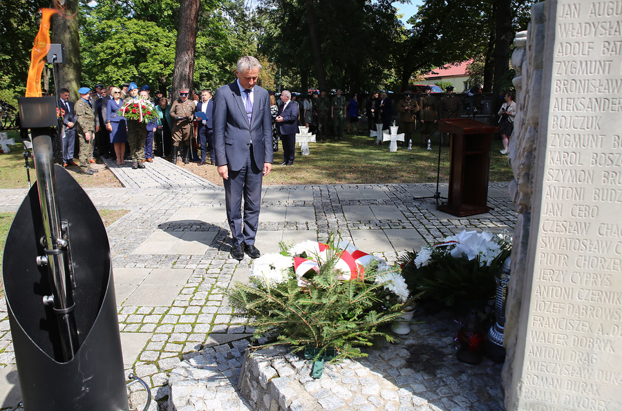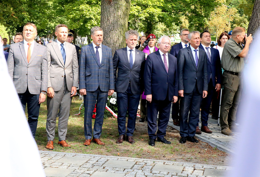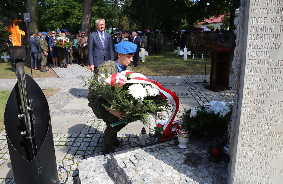 Przed Pomnikiem Żołnierzy Września 1939 r. złożono kwiaty i zapalono znicze oddając hołd ofiarom wojny. - Czas, kiedy spotykamy się z okazji rocznicy wybuchu strasznej wojny to zarówno czas na pamięć, jak i czas na przestrogę i powiedzenie sobie: gdzie jesteśmy i dokąd zmierzamy? 1 września 1939 roku powiedział nam jedno: jak nie będziemy silni, nikt nam nie pomoże. Skończyło się na kartkach z wieloma podpisami, a my zostaliśmy sami – bo taki był wówczas rachunek ekonomiczny. Dlatego z takim uporem i determinacją budujemy nasze wojsko. Rok 1939 to wielka trauma, ale i wielka odpowiedzialność dla nas, aby pamiętać o bohaterach tamtych czasów. Doczekaliśmy wolnej Polski i szanujmy to na wszelkie możliwe sposoby. Nie dajmy się dzielić – mówił wojewoda.
