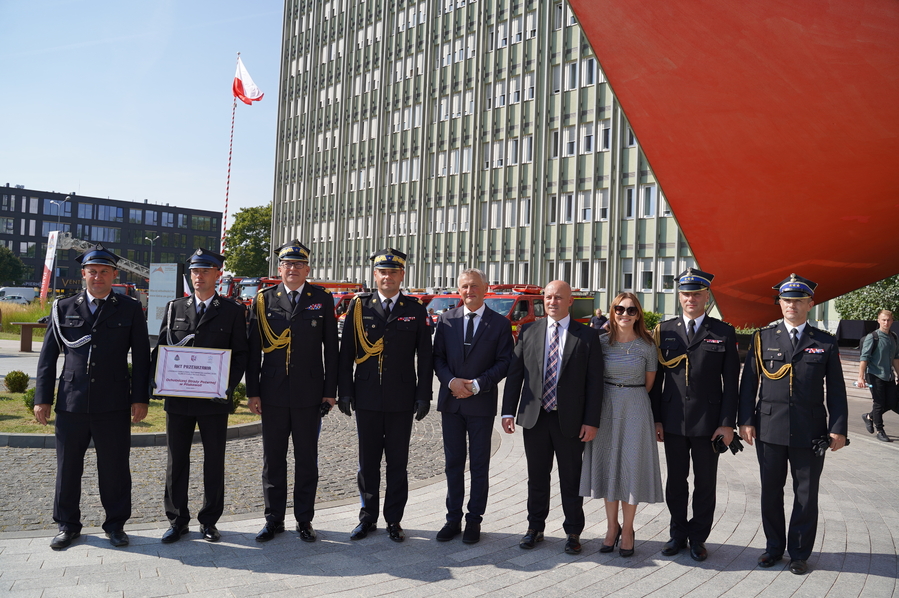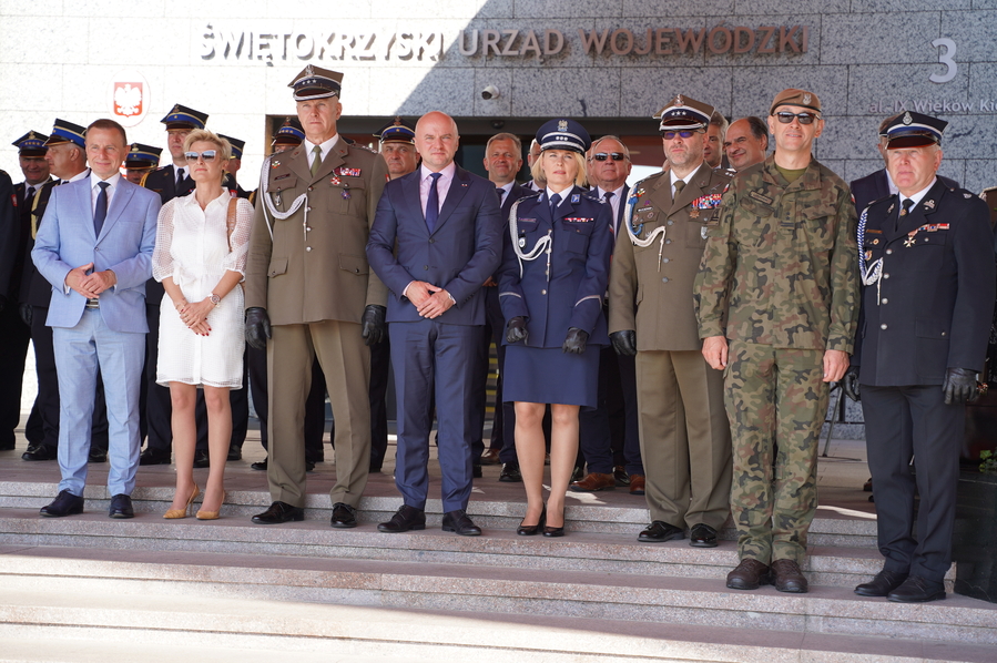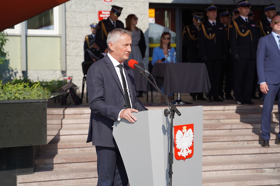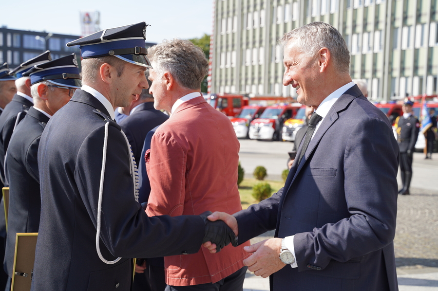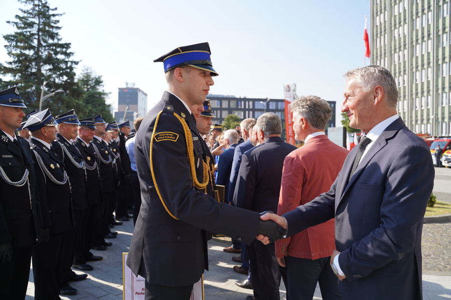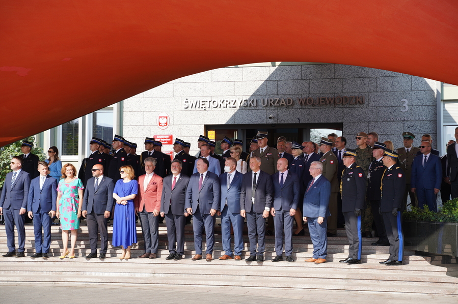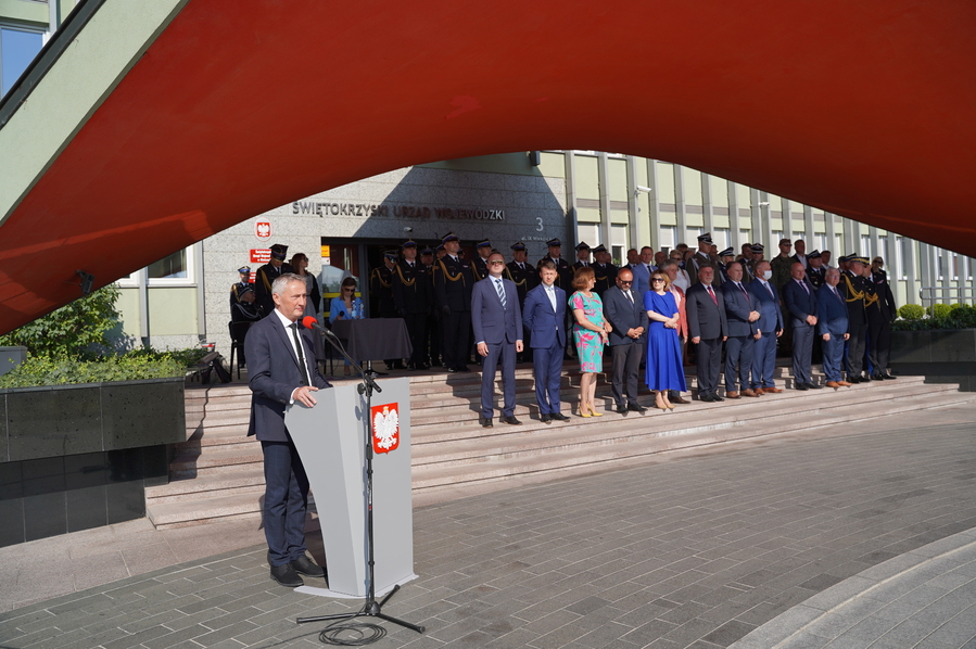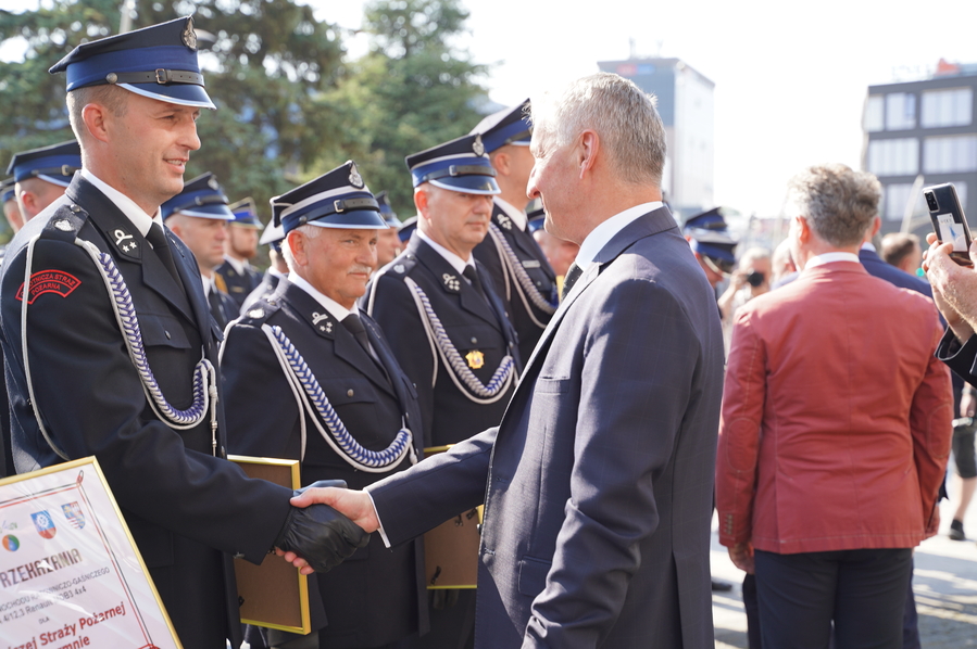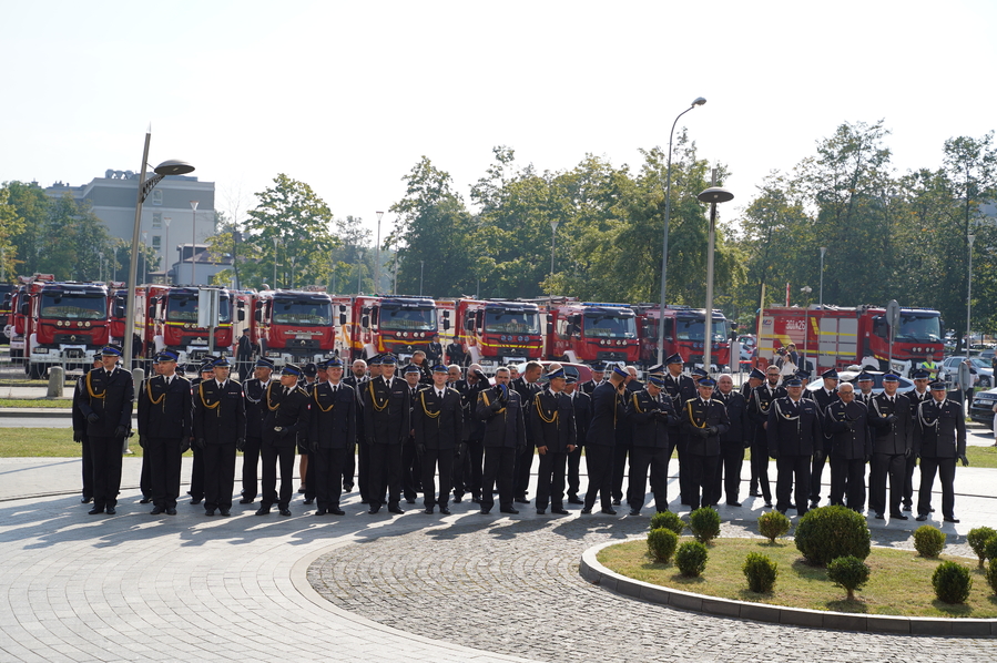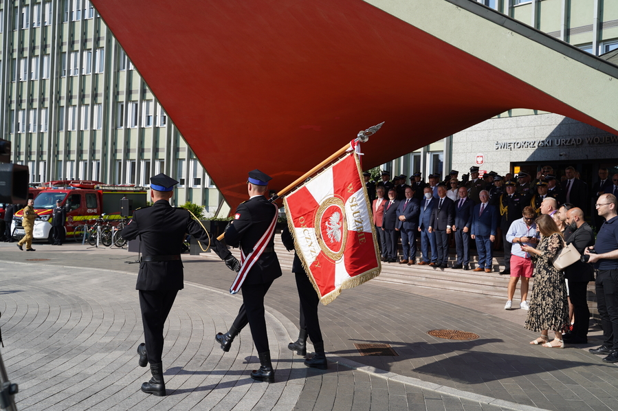 W uroczystej strażackiej zbiórce przed urzędem wojewódzkim wzięli udział także m.in. parlamentarzyści, szefowie służb mundurowych oraz samorządowcy.