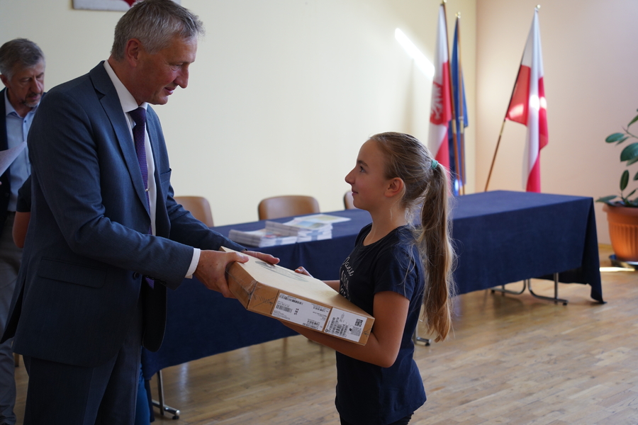 Uczniowie czwartych klas szkół podstawowych z gminy Michałów otrzymają laptopy. W przekazaniu sprzętu komputerowego dla 49 uczniów uczestniczył wojewoda Zbigniew Koniusz.