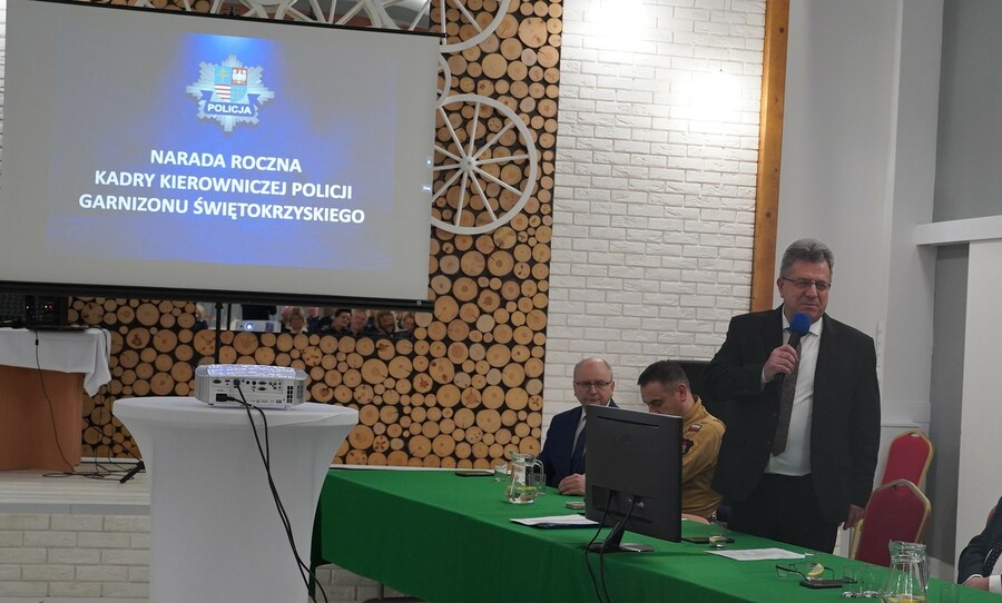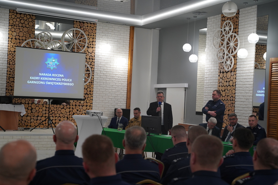 Wojewoda świętokrzyski Józef Bryk uczestniczył w odprawie kadry kierowniczej policji garnizonu świętokrzyskiego, podczas której podsumowano pracę w 2023 roku. Odbyła się w czwartek w Sielpi koło Końskich.