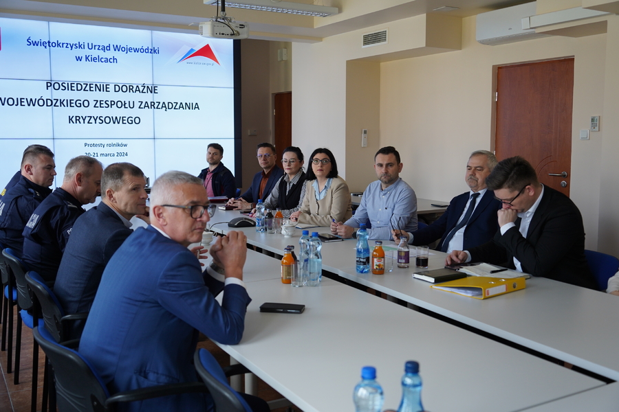 W Świętokrzyskim Urzędzie Wojewódzkim odbyło się spotkanie Wojewódzkiego Zespołu Zarządzania Kryzysowego w sprawie protestów rolników. Obradom przewodniczył wicewojewoda świętokrzyski Michał Skotnicki.