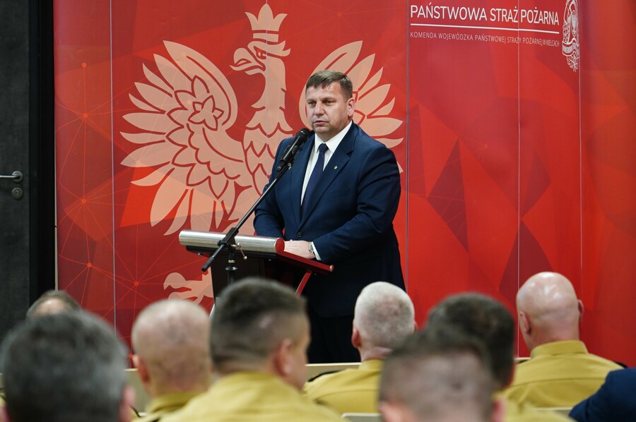 Wziął udział w rocznej naradzie świętokrzyskiej straży pożarnej, która odbyła się we wtorek na Uniwersytecie Jana Kochanowskiego w Kielcach. W spotkaniu uczestniczył wicewojewoda Michał Skotnicki, strażacy oraz wójtowie, a także samorządowcy zrzeszeni w Związku Miast i Gmin Województwa Świętokrzyskiego.