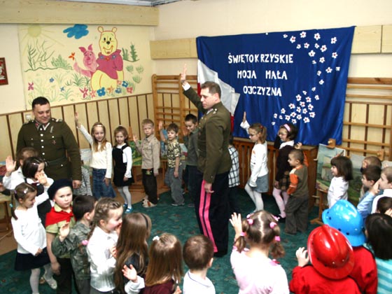 Podczas uroczystości dzieci rozmawiały z wojewodą i dowódcami Kieleckiego Ochotniczego Szwadronu Kawalerii na temat hymnu, godła i narodowych barw Polski, a także województwa świętokrzyskiego. Na zakończenie spotkania przedszkolaki dostały książeczki, w których znajdują się m. in. wierszyki o tematyce patriotycznej oraz rebusy i zabawy edukacyjne.