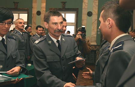 Zasłużonych policjantów uhonorował odznakami resortowymi uczestniczący w odprawie Kazimierz Szwajcowski, zastępca Komendanta Głównego Policji.