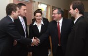 Kolejnym punktem wizyty Marszałka Sejmu RP było spotkanie ze studentami Wydziału Zarządzania i Administracji Uniwersytetu Humanistyczno-Przyrodniczego Jana Kochanowskiego w Kielcach. Po południu, w siedzibie kieleckiej chorągwi ZHP marszałek Komorowski wręczy nagrody uczestnikom konkursu organizowanego z okazji obchodów 70-lecia wybuchu II Wojny Światowej który organizowany był pod patronatem Marszałka Sejmu RP.