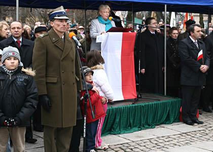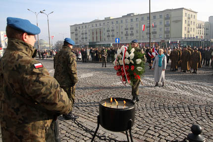 Uroczystości przed Pomnikiem czynu Legionowego rozpoczęły się o godz. 12.30. - Spotykamy się dziś w 92. rocznicę odzyskania niepodległości, aby świętować i wspominać tamte dni triumfu, entuzjazmu i zwycięstwa. Wielki festyn wolności po tylu latach zniewolenia, zsyłek, łagrów, walki. Bóg, Honor, Ojczyzna na sztandarach i w sercu. W całym kraju pochylamy dziś głowy w miejscach pamiętnych zdarzeń z naszej historii - powiedziała wojewoda.