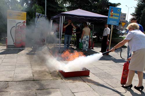 Z pracownikami oraz odwiedzającymi stoisko spotkała się wojewoda Bożentyna Pałka-Koruba, która podobnie jak inni skorzystała z możliwości przeprowadzenia przeglądu gaśnicy. W pobliżu stoiska można było również obejrzeć pokazy gaszenia pożarów, specjaliści z firmy SUPON - partnera akcji - służyli również poradami oraz prezentowali nowoczesny sprzęt gaśniczy używany w budynkach i samochodach.