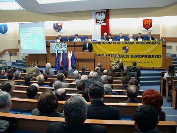 Jerzy Plewa - podsekretarz stanu w Ministerstwie Rolnictwa i Rozwoju Wsi oraz Włodzimierz Wójcik - Wojewoda Świętokrzyski otworzyli w Świętokrzyskim Urzędzie Wojewódzkim konferencję "Grupy producenckie w perspektywie integracji z Unią Europejską"