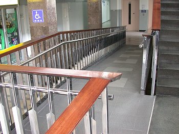 Podjazd dla osób niepełnosprawnych, prowadzący do sal konferencyjnych w "okrąglaku", oddano do użytku w Świętokrzyskim Urzędzie Wojewódzkim